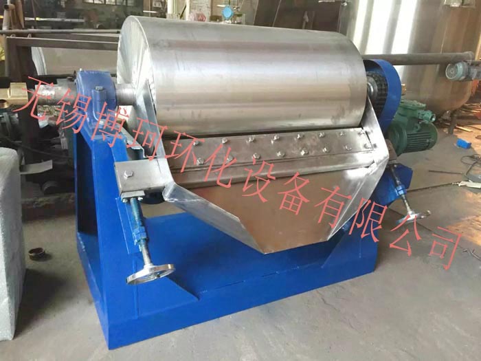 轉鼓的干燥則是利用轉動的轉鼓,并以傳熱的方式,將已經附著在轉鼓外壁上的物料,或者是帶狀的物料進行干燥的處理,屬于一種連續的操作過程。所以其在結構上屬于簡單型的,而且操作也方便,主要的使用周期比較長,在性能上比較的可靠和穩定,蒸汽的耗量也小,加工后的產品在質量上比較好。被干燥的物料直接從殼體的上方正中間位置進入,并不斷的進行正反的轉動,將耙齒上的物料攪拌下來,物料的軸向會來回的走動,和殼體的內壁發生接觸,其在表面并會出現不斷的新,并會受到蒸汽在間接上的加熱,耙齒會均價的進行攪拌,讓物料的表面在水分上能排出,而氣化的水分在經過干式的除塵器進之后,直接的從真空泵在出口被放出。
